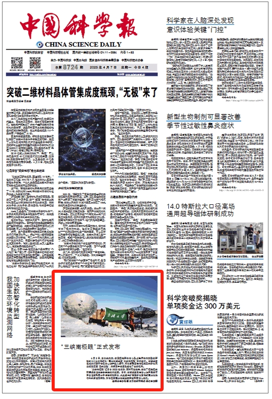 《中国科学报》讯 (2025-04-07 第1版 要闻) 4月3日,由beat365平台官方网站、中国极地研究中心及上海师范大学联合研制的3.2米口径射电/毫米波望远镜“三峡南极眼”正式发布。该望远镜已成功部署于南极中山站并投入运行,标志着我国在南极地区的射电天文观测实现“零的突破”,为探索宇宙奥秘提供了全新视角。